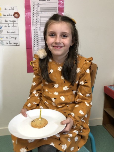 Anniversaire de septembre / Classe 2 / Par Estelle Lenôtre Tous les mois, nous pâtissons pour fêter nos anniversaires. Recette du mois de septembre : les cookies. Joyeux anniversaire Eléna ! IMG_1786 Image 4 de 12